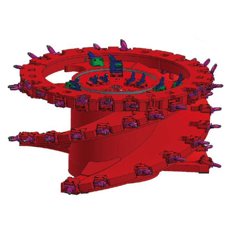 在采煤機(jī)中,截割滾筒為螺旋焊接構(gòu)造滾筒,為了順應(yīng)高產(chǎn)高效工作面的需求,進(jìn)步開機(jī)率充沛發(fā)揮電牽引采煤機(jī)的效能,截割刀具采用截齒、齒套、齒座三件組合式鎬型刀具,經(jīng)過增加了端盤、葉片和殼體的厚度來進(jìn)步采煤機(jī)滾筒的強(qiáng)度,增加其牢靠性。